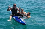Reno Caldwell’s new PR of 6:01 was a testament to both his preparation and his execution; he pushed when he needed to, stayed relaxed and happy, knee paddled with consistency and strength, and in the end put in what we all considered an inspired effort. It was a little bittersweet to come up a minute short of breaking six hours, but that’s just how it breaks. A special thanks to Tyler Resh, whose experience with going fast on a paddleboard made decision making that much more precise, and Mark Urkov, skipper of The Rough House. Mark’s focus on bringing out the best in paddlers is becoming something of a ‘thing’ among the paddling set–not to mention that he is one of the funniest guys around.